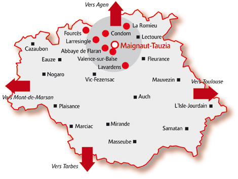 Le village se situe à 50 km dAgen, sur la route de Condom à Auch,
